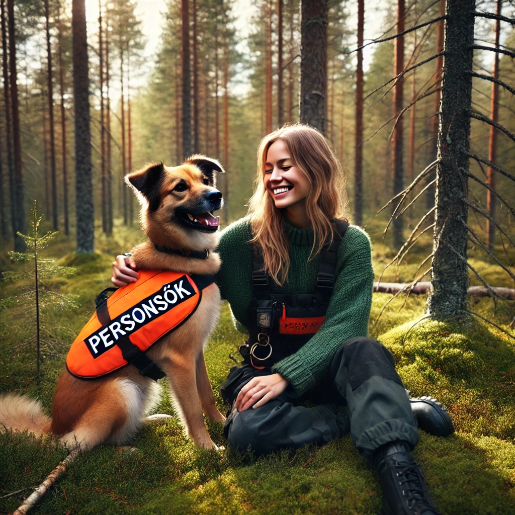 På denna kurs ska hunden lära sig att söka gömda människor i skogen och lära sig att markera när personen är hittad genom att ta en rulle från figuranten och springa tillbaka till sin förare och visa föraren vägen till figruanten.
