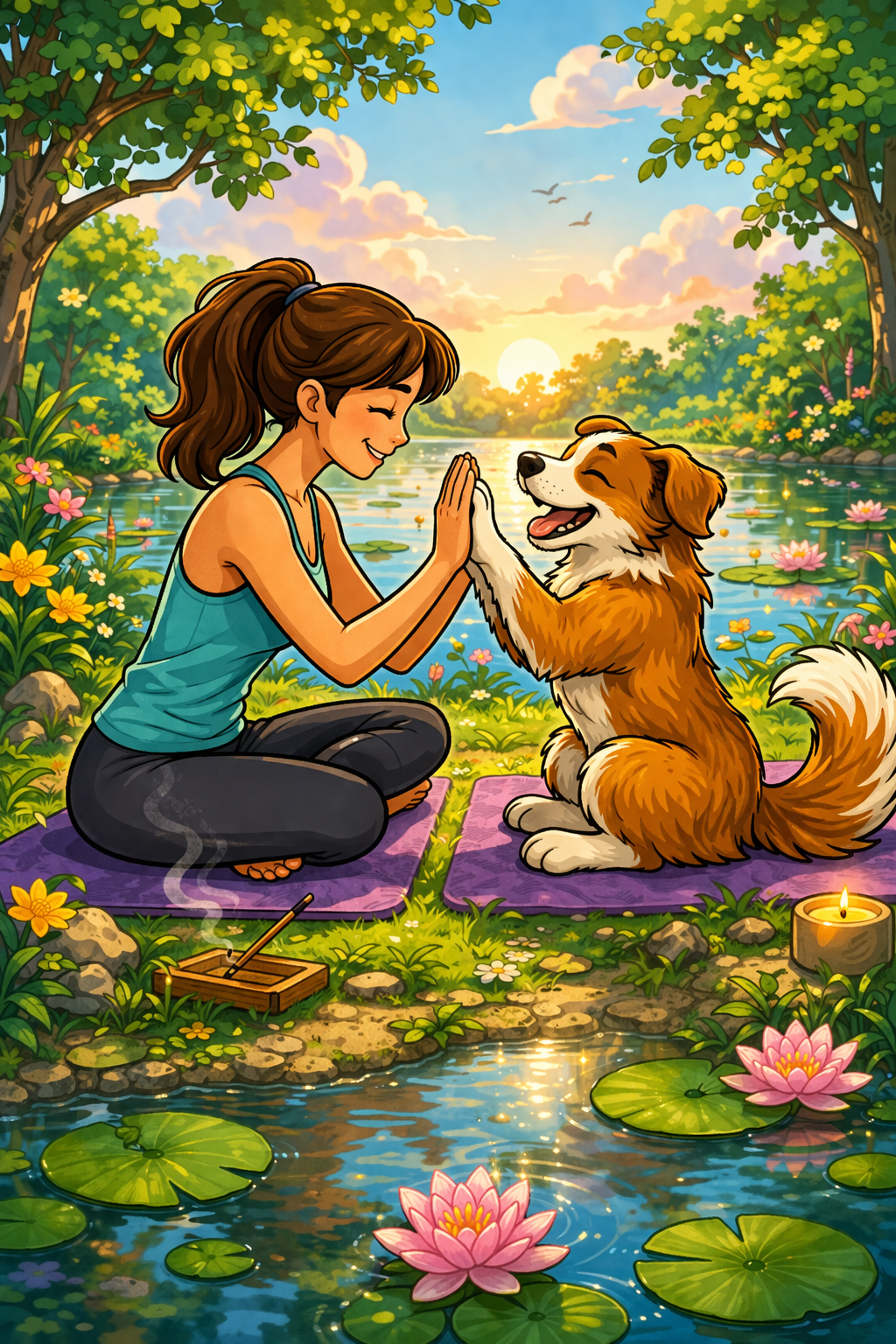 Vi börjar med några enkla yogarörelser för att komma ner i varv innan vi låter hundarna göra några dogapositioner som hjälper hunden hitta sin inre och yttre balans.